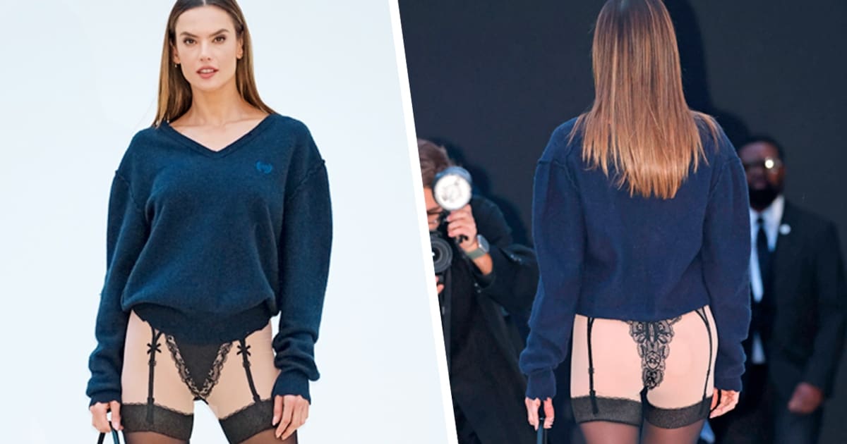 Alessandra Ambrosio's exciting look at Balenciaga caused hearts to race. Because while she wore a very modest woolen sweater on top, the look was pretty hot underneath!